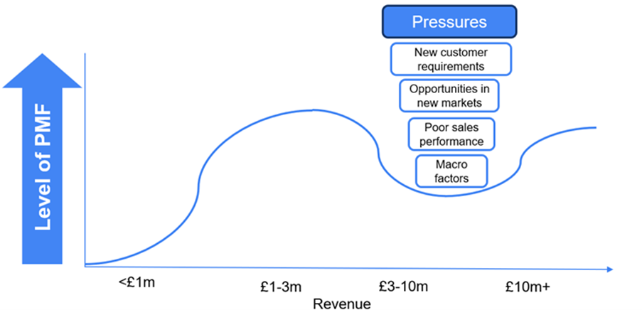 In this blog, I’m going to unpack the pressures that contribute to the destruction of PMF. Typically, they arrive as a company reaches £2-10m in revenues. The business is no longer flying under-the-radar; it’s small, but people know about you – and they have ideas about what you should become. But harder to navigate than unsolicited advice are the compelling opportunities…